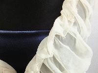 ポリエステル100% 【日本製】 シホンの1枚もののフォーマルストールです。 ヨコ方向にスパンテックス(弾性糸)が入っていて、シュリンクした感じがかわいらしい商品です。ふちには結び目以外、首まわりもスソにも金~銀に見えるビーズが付いております。 フワ~っとした、やさしいイメージです。 *単位が「M(メーター)」になっていますが「(1)点」とご理解ください。