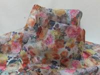 ポリエステル 100% 写真調(生の花)の総花柄の花柄プリントです。 グランドはアイボリーで方向性もなく、柄の大きさは少し小さ目ですが、使いやすいですよ。 «コロン»とした、かわいいバラが全面に散りばめられおります。 袋物・小物、もちろんドレスにもお使いになっても素敵ですよ。